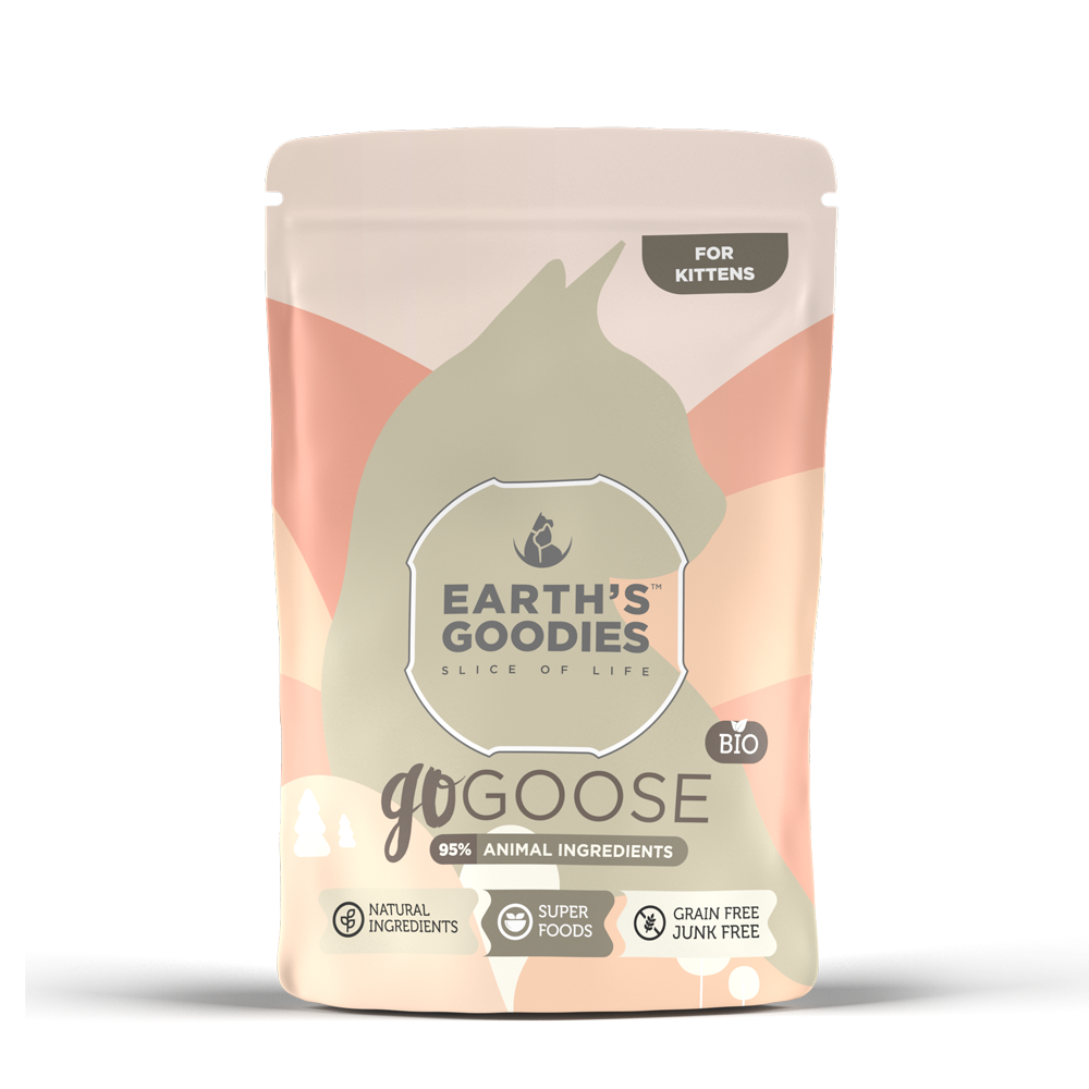 ايرث قوديز طعام رطب عضوي ومتكامل بلحم الوز للقطط الصغيرة 85غ:. 95% من الدجاج الطبيعي. مكونات عضوية. مضاف الكاتنيب والسبيرولينا. خالي من الحبوب. طعام متكامل ومتوازن