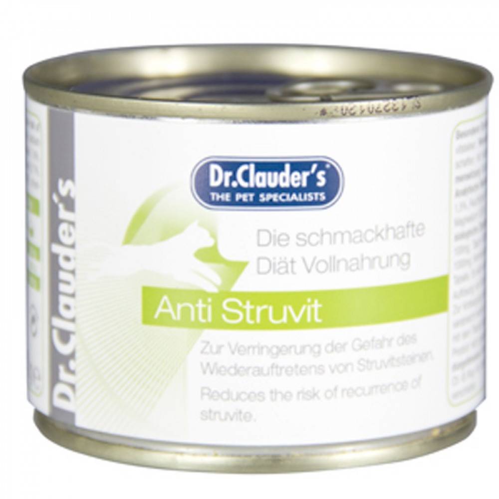 تم تطوير حمية دكتور كلودر المضادة للستروفيت خصيصًا لمنع تكون حصوات الستروفيت وتكوينها.يعزز الرقم الهيدروجيني الحمضي المطلوب في البول قابلية ذوبان الستروفيت وبالتالي يدعم حل حصوات الستروفيت.الغرض الغذائي الخاص:التقليل من خطر تكرار ظهور حصوات الستروفيت.الخصائص الغذائية الأساسية:خصائص تحمض البول ومستوى معتدل من المغنيسيوم.التركيب: الدواجن ولحم البقر والأرز وكلوريد الصوديوم وكربونات الكالسيوم والتوت البري وزيت السلمون.المكونات التحليلية: بروتين خام 7.6٪ ، دهون خام 6.8٪ ، ألياف خام 0.42٪ ، رماد خام 1.5٪ ، رطوبة 74٪ ، كالسيوم 0.17٪ ، فسفور 0.15٪ ، بوتاسيوم 0.23٪ ، صوديوم 0.42٪ ، ماغنسيوم 0.02٪ ، كلوريد 0.72٪ ، كبريت 0.08٪.الإضافات / كلغ: المضافات الغذائية: الفيتامينات: 5000 وحدة دولية ، D3 150 وحدة دولية ، إي (على هيئة ألفاتوكوفيرولاسيتات) 100 مجم ، توراين 600 مجم ، ليسيثين 1200 مجم. المضافات التكنولوجية: صمغ كاسيا 1000 مجم ، كلوريد الأمونيوم 1500 مجم ، سترات البوتاسيوم 1600 مجم. يوصى باستشارة الطبيب البيطري قبل الاستخدام.قم دائمًا بتوفير المياه العذبة!