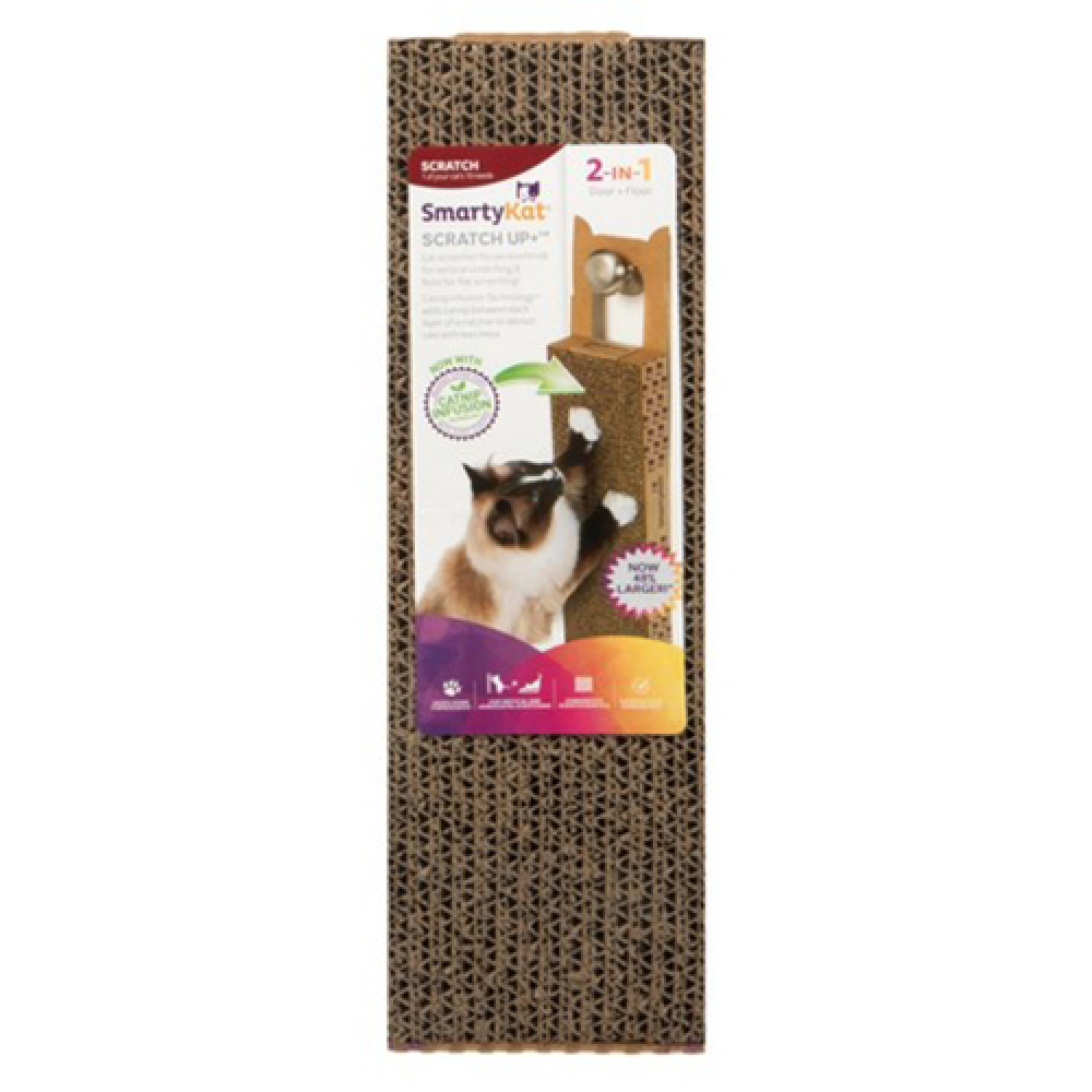 خدش تعليق الباب Scratch Up + ™ سميك للغاية ويوفر سطح خدش رأسي عند تعليقه من مقبض الباب أو يمكن وضعه بشكل مسطح على الأرض للخدش الأفقي.