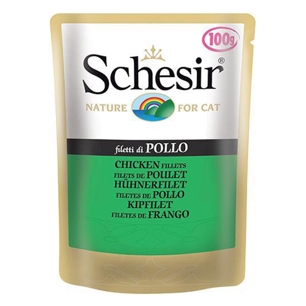 يتكون Schesir Wet Cat Food من شرائح دجاج في جيلي ، يقدم للقطط ، جميع المكونات طبيعية 100٪ ،المكونات مطبوخة بالبخار وتحضر باليد ، جميع NOات Schesir مصنوعة بدون مواد حافظة أو ألوان أو نكهات مضافة، وتحتوي على جميع العناصر الغذائية التي تحتاجها القطط لإكمال دورة نموها مثل أوميغا 3 الذي يساعد على حماية الجلد ومنع تساقط شعر القطط ، والبروتين الضروري للنمو الطبيعي والمناسب للعضلات والأسنان، فالسعرات الحرارية فيه قليلة جدًا ، فلا تخف من زيادة وزن حيوانك الأليف.